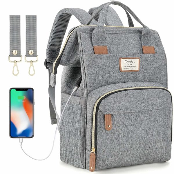Diaper Bag Backpack with USB Charging Port and Stroller Straps