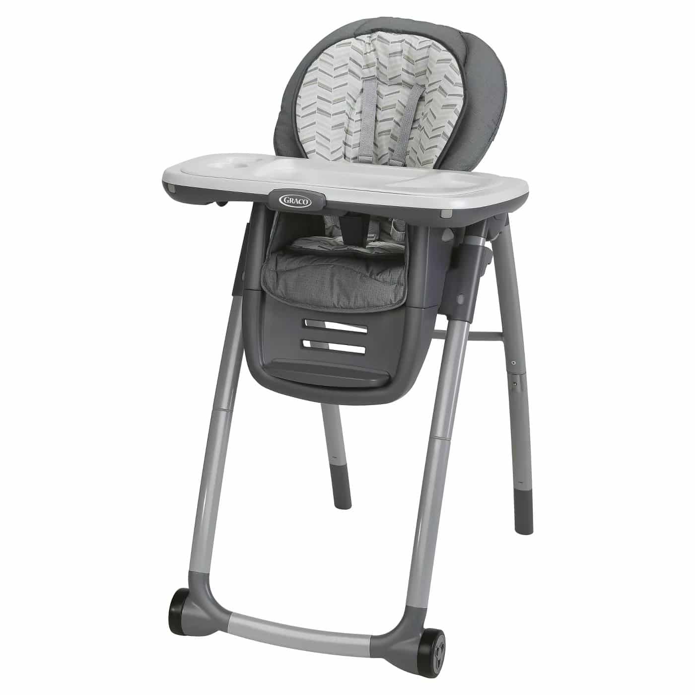 Foldable Highchair allows for compact storage; 5 height adjustments provide the best fit for your dining table